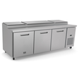 The Kelvinator KCHPT92.12 is a high-capacity, self-contained refrigerated pizza prep table that is ideal for busy commercial kitchens. This three-section prep table has a generous capacity of 32.0 cubic feet and can accommodate up to twelve 1/3 size GN pans, making it perfect for storing and preparing a wide variety of pizzas and other menu items.