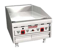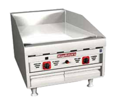 Elevate your restaurant's culinary capabilities with the MagiKitch'n MKG-24-E-NAT 24' countertop griddle, a powerhouse of grilling performance designed to withstand the rigors of daily use. Its robust 1' thick polished steel cooking surface boasts exceptional heat retention, ensuring consistent, even cooking with blazing fast recovery times that allow you to seamlessly transition between different grilling tasks. Featuring dual electric thermostat controls per 12' section, the griddle delivers an impressive 60,000 BTU of heating power, providing unmatched versatility for a wide range of cooking needs. The precise thermostatic controls, with a temperature range of 200-550 degrees Fahrenheit and a matchless ignition system, make it ideal for everything from melting quesadillas and searing French toast to browning breakfast sausage. Each control boasts an on/off switch, enabling you to selectively turn off specific zones for energy efficiency when not in use. Crafted with durability and ease of cleaning in mind, the griddle boasts stainless steel front and side panels, while the removable cabinet back enhances cleaning accessibility. Four adjustable 4' legs offer countertop elevation for convenient cleaning underneath, or they can be removed for flush mounting. A stainless steel backsplash and tapered side splashes protect your walls and surrounding equipment from grease spatter. Grease management is simplified with a 3 1/2' grease gutter that efficiently directs grease into the generously sized 3.75-gallon grease drawer for quick and effortless disposal. This powerful griddle, requiring a 115V connection and natural gas, is a compact yet highly capable addition to any kitchen, boasting overall dimensions of 24' wide, 31 9/16' deep, and 23 9/32' high.