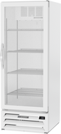 The MarketMax™ Freezer Merchandiser is a one-section, reach-in freezer with a triple pane hinged glass door and an 11.9 cu. ft. capacity. It features electronic control, a digital display, four epoxy-coated steel shelves, LED interior lighting, and a lighted sign panel. The self-closing door has an automatic hold-open feature, and the refrigeration system is bottom-mounted. The exterior is white, and it uses R290 Hydrocarbon refrigerant. It has a 1/2 HP compressor and is cULus, UL EPH Classified, and UL-Sanitation certified. This product is made in the USA.