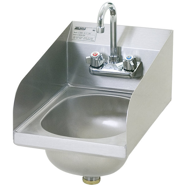Eagle Group HSAN-10-F-LRS - Fregadero de mano de 18" x 12" con grifo de cuello de cisne, salpicaduras laterales y desagüe de cesta está agotado y se enviará tan pronto como vuelva a estar disponible.