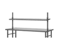 - Los soportes tubulares de acero inoxidable de 1,625˝ (41 mm) se extienden a través de la mesa y están asegurados al estante inferior ajustable.