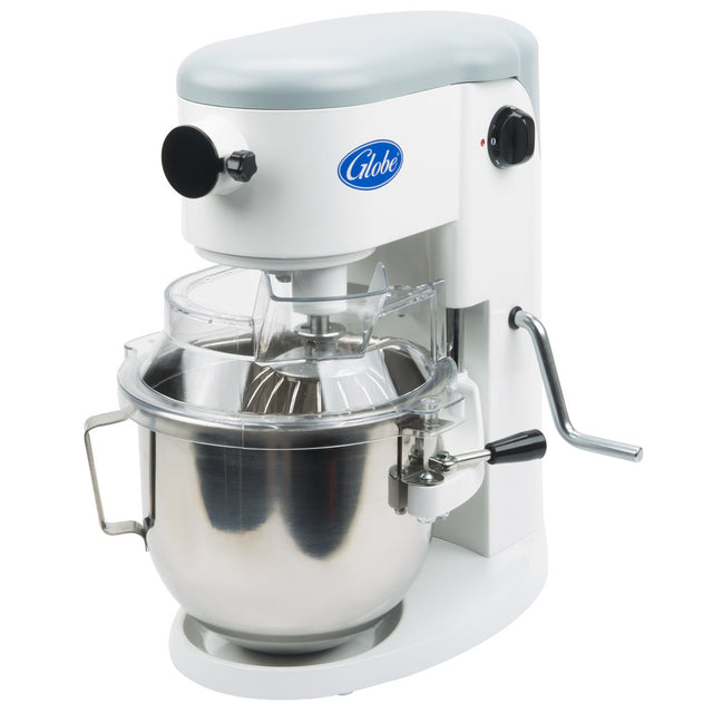 La batidora está construida con un cuerpo rígido de aluminio fundido con 10 velocidades. La unidad tiene un motor de 800 w con protección contra sobrecarga y una transmisión de engranajes de alto torque, lubricada permanentemente. La batidora viene con un tazón de acero inoxidable de 5 cuartos, batidor plano, batidor de alambre, gancho para masa y tapa contra salpicaduras con vertedero para ingredientes. La batidora tiene un cubo de fijación n.º 10 y un elevador de tazón. El mezclador está listado como NSF y ETL.